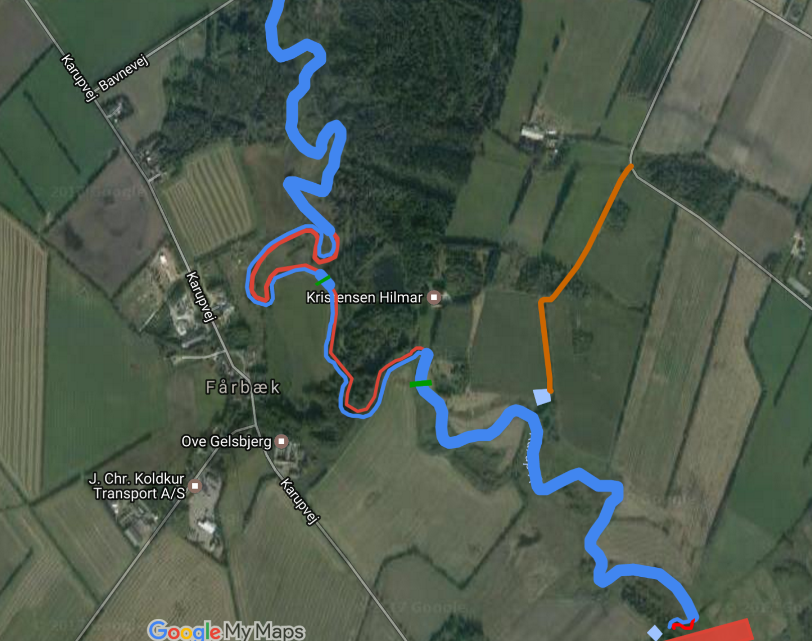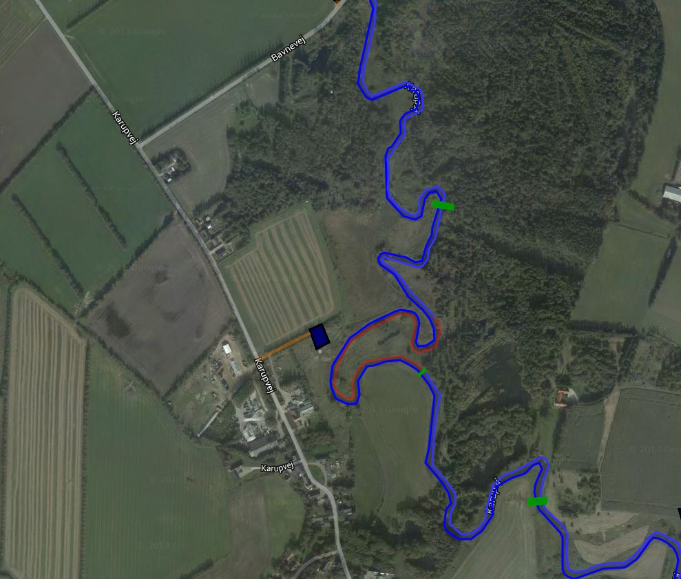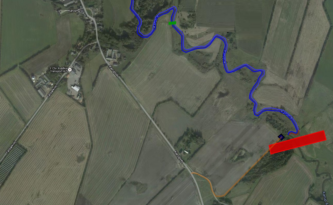 - Rød streg over åen betyder fiskestop